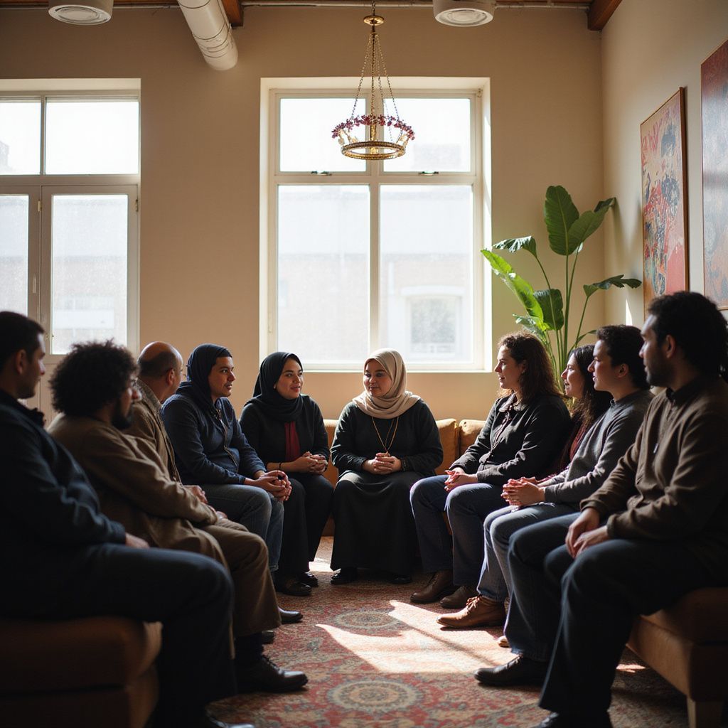 A communal iftar event bringing together diverse Muslim families to share meals and strengthen community bonds during Ramadan.