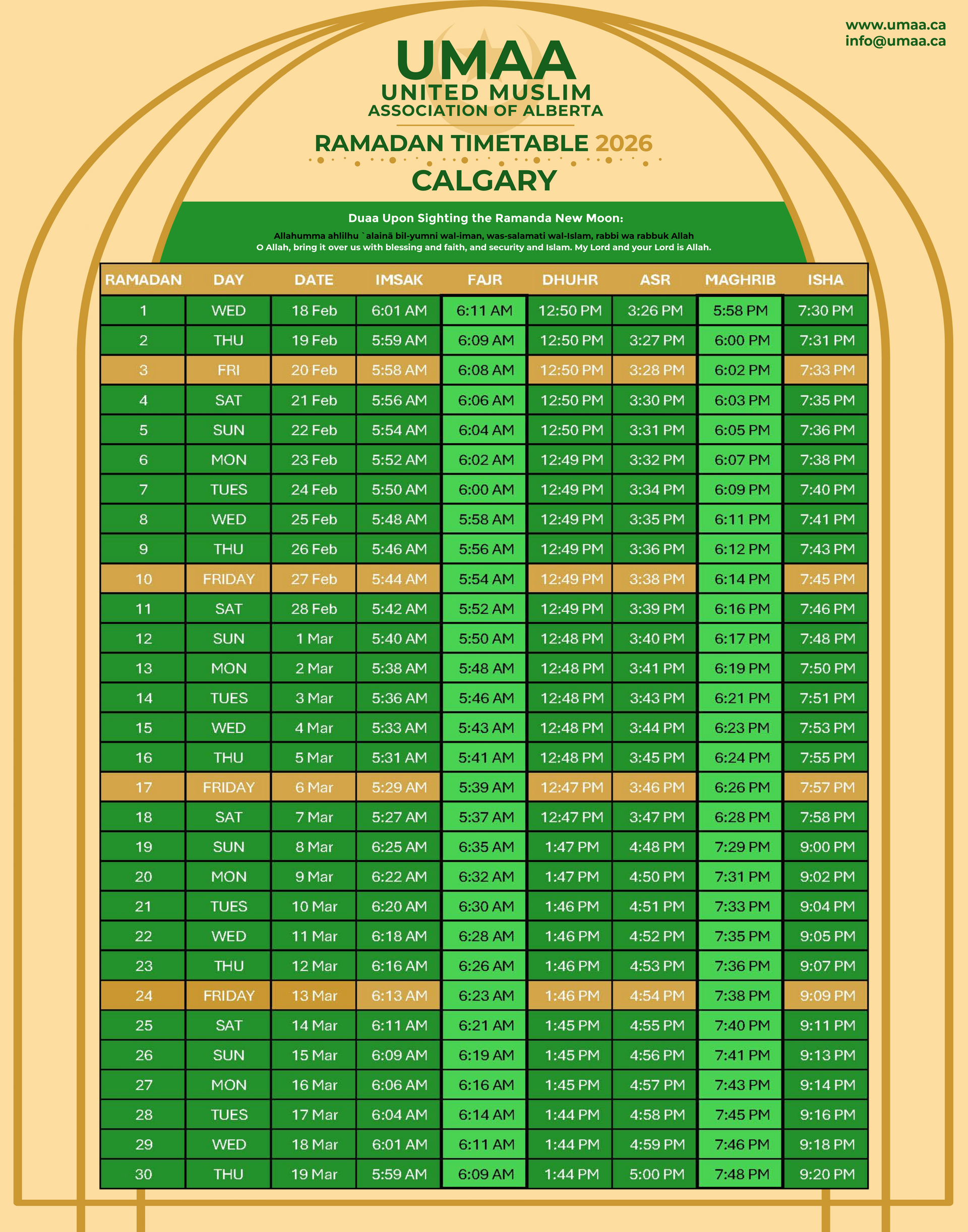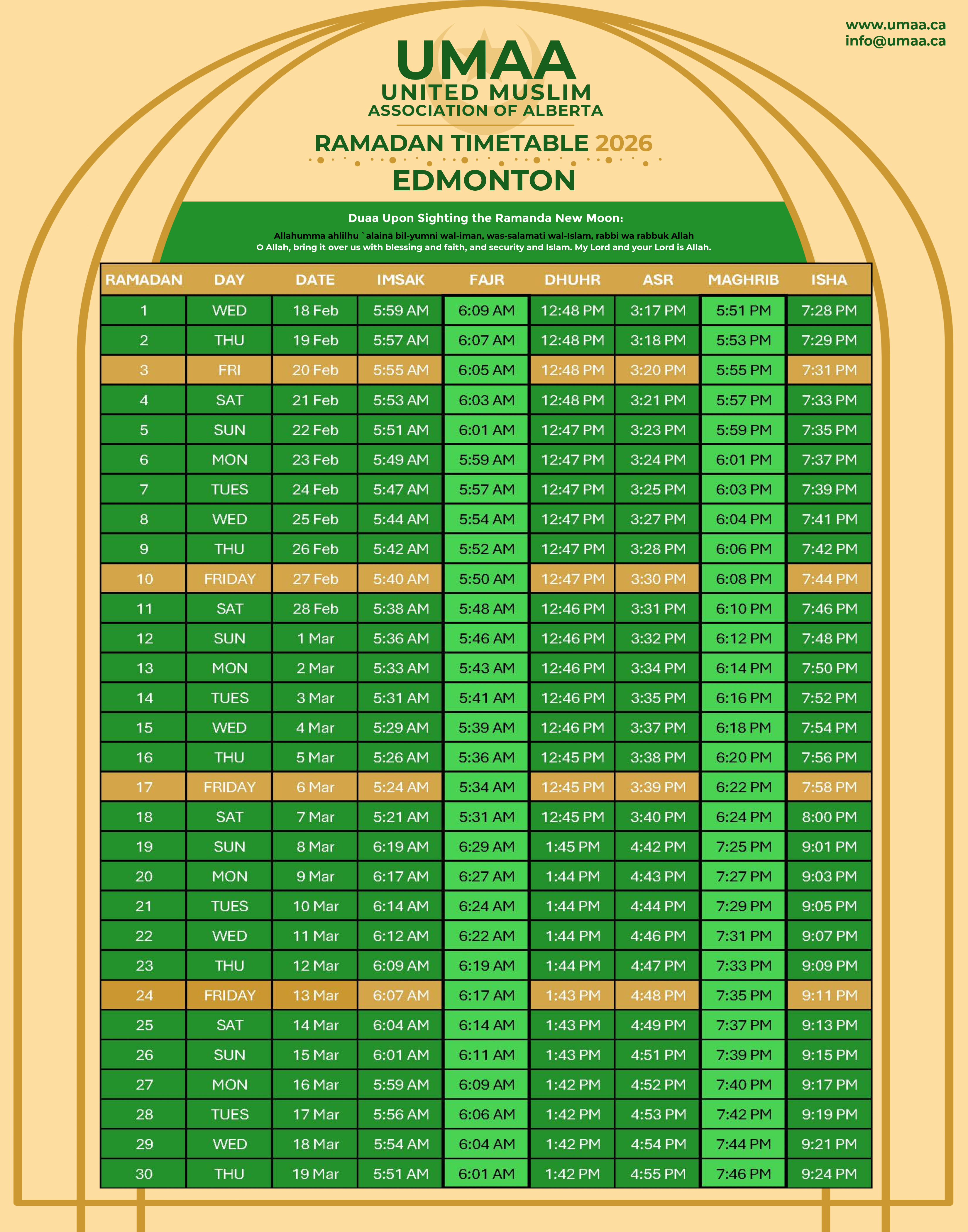 UMAA supports Muslims across Alberta by sharing timely information, resources, and advocacy to help individuals and families observe Ramadan with ease, dignity, and connection.